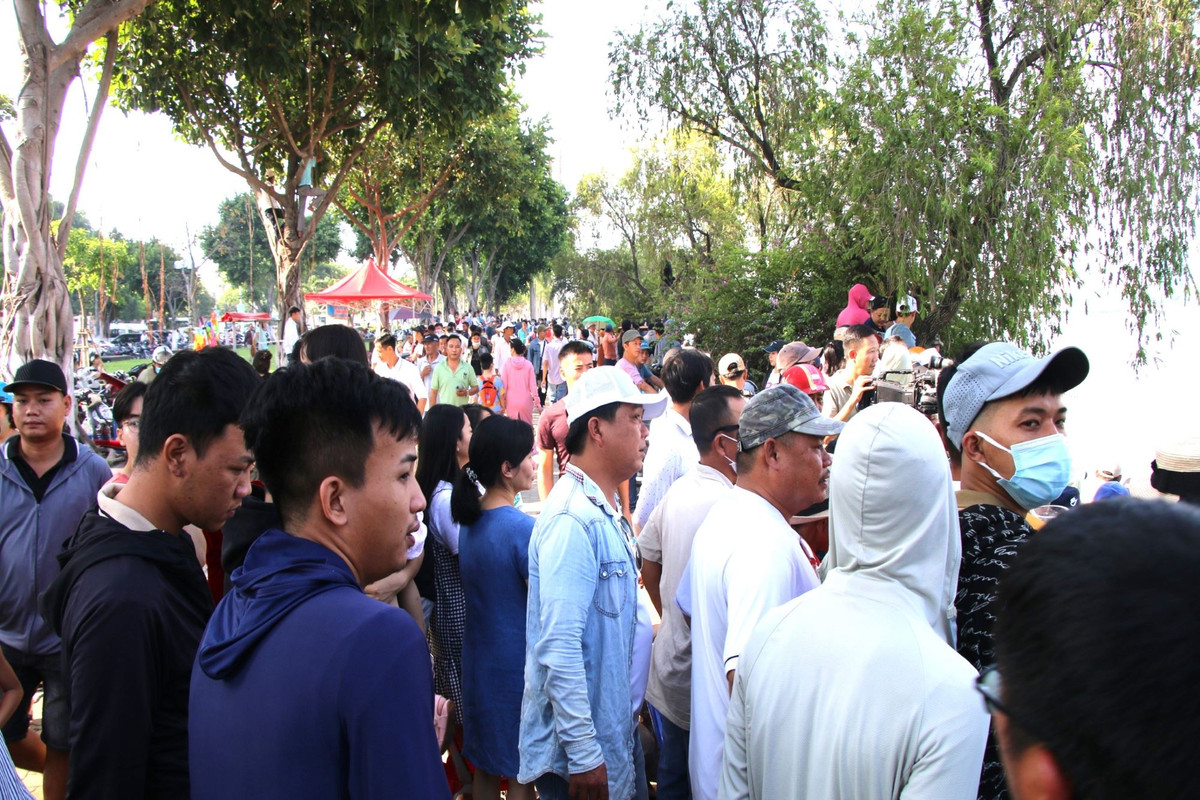 Dòng người ken kín 2 bên bờ sông Hàn để cổ vũ cho các thuyền đua, tạo nên không khí lễ hội tấp nập.