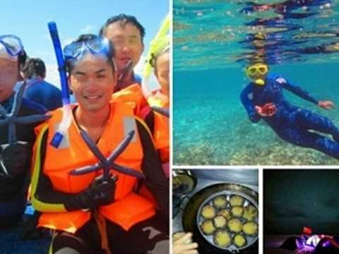 Trong các tấm ảnh được đăng trên mạng, người ta thấy một nhóm người lặn biển tại một hòn đảo ở Hoàng Sa, sục sạo dưới đáy biển tìm bắt những con cầu gai và sao biển.