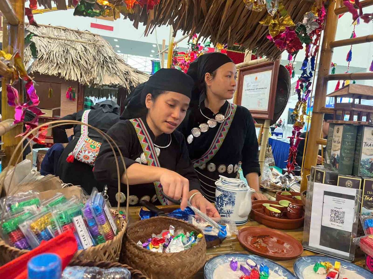 Với những du khách yêu thích văn hoá đặc trưng của người Tày thì có thể ghé thăm gian hàng của bản làng Thái Hải (Thái Nguyên) để tận mắt chiêm ngưỡng mô hình nhà sàn ngay tại hội chợ. Bên cạnh đó, các sản phẩm như chè lam, cơm lam, xôi trám, xôi lá cẩm, bánh gai, thịt treo gác bếp…cũng được giới thiệu tại đây.