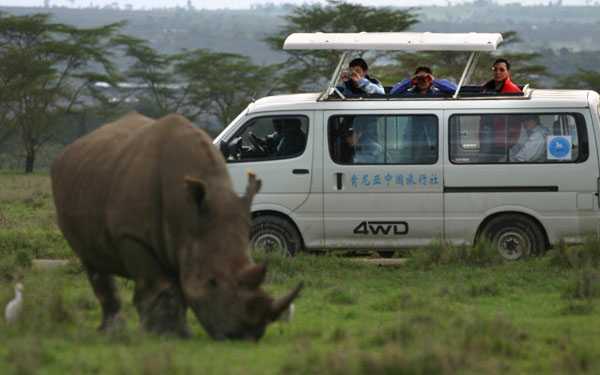 | Du khách Trung Quốc ngắm động vật hoang dã tại Công viên Quốc gia Hồ Nakuru ở Kenya. |