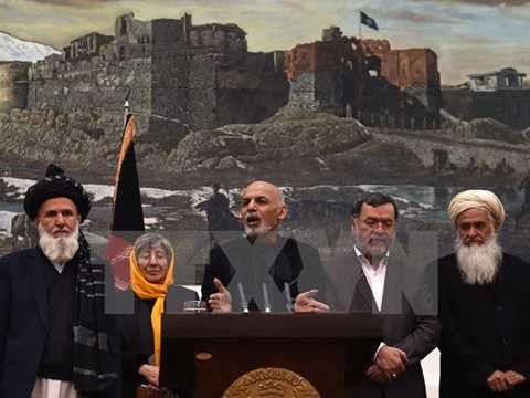 | Tổng thống Afghanistan Ashraf Ghani (giữa) chỉ trích chương trình thẩm vấn của CIA tại Phủ Tổng thống, thủ đô Kabul ngày 10/12 |