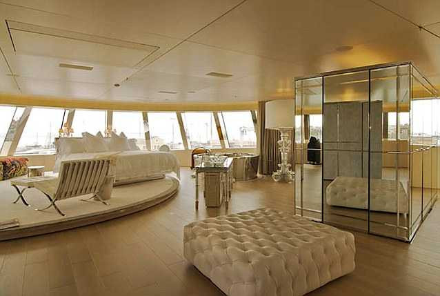 Du thuyền được nhà thiết kế nội thất Phillippe Starck trang trí, bao gồm sàn nhảy với trần bằng kính, hồ bơi ngay trên du thuyền. Các phòng ngủ được bảo vệ bằng hệ thống nhận dạng vân tay và kính chống bom.
