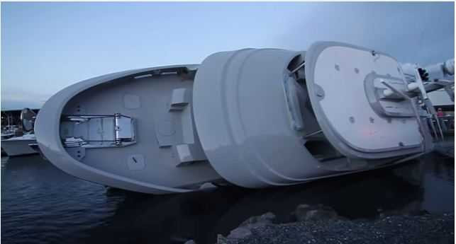 Một siêu du thuyền có tên Baden vừa được hạ thủy đã bị lật úp ở bang Washington (Mỹ). Du thuyền có trị giá 10 triệu USD. Theo các hình ảnh được ghi lại, chiếc du thuyền từ từ bị nghiêng và sau đó chìm dần.