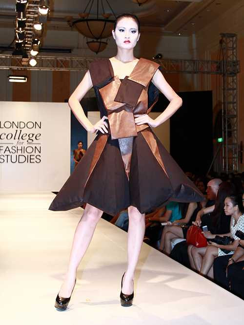 Kể về đêm trình diễn bộ sưu tập thời trang sinh viên tốt nghiệp, Thùy Linh chia sẻ mẫu thiết kế này cần đến hai người phụ giúp người mẫu mặc lên người. “Tôi đã rất lo, người mẫu sẽ gặp khó khăn khi trình diễn mẫu thiết kế có áo gỗ và chân váy bằng vải nặng hơn chục kilogam. Nhất là khi người mẫu Trà My, người trình diễn trang phục này, xoay một vòng trên sàn catwalk”. Cô còn kể thêm: “Sau khi diễn xong trang phục của mình, người mẫu Trà My kể lúc xoay một vòng đó, chị có cảm thấy như có ai đang đẩy mình xuống phía khán giả”.