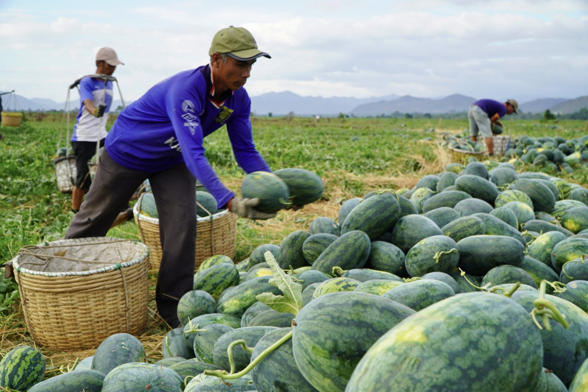 Giá dưa hấu giảm mạnh khiến nông dân lao đao. (Ảnh: Hiền Mai)