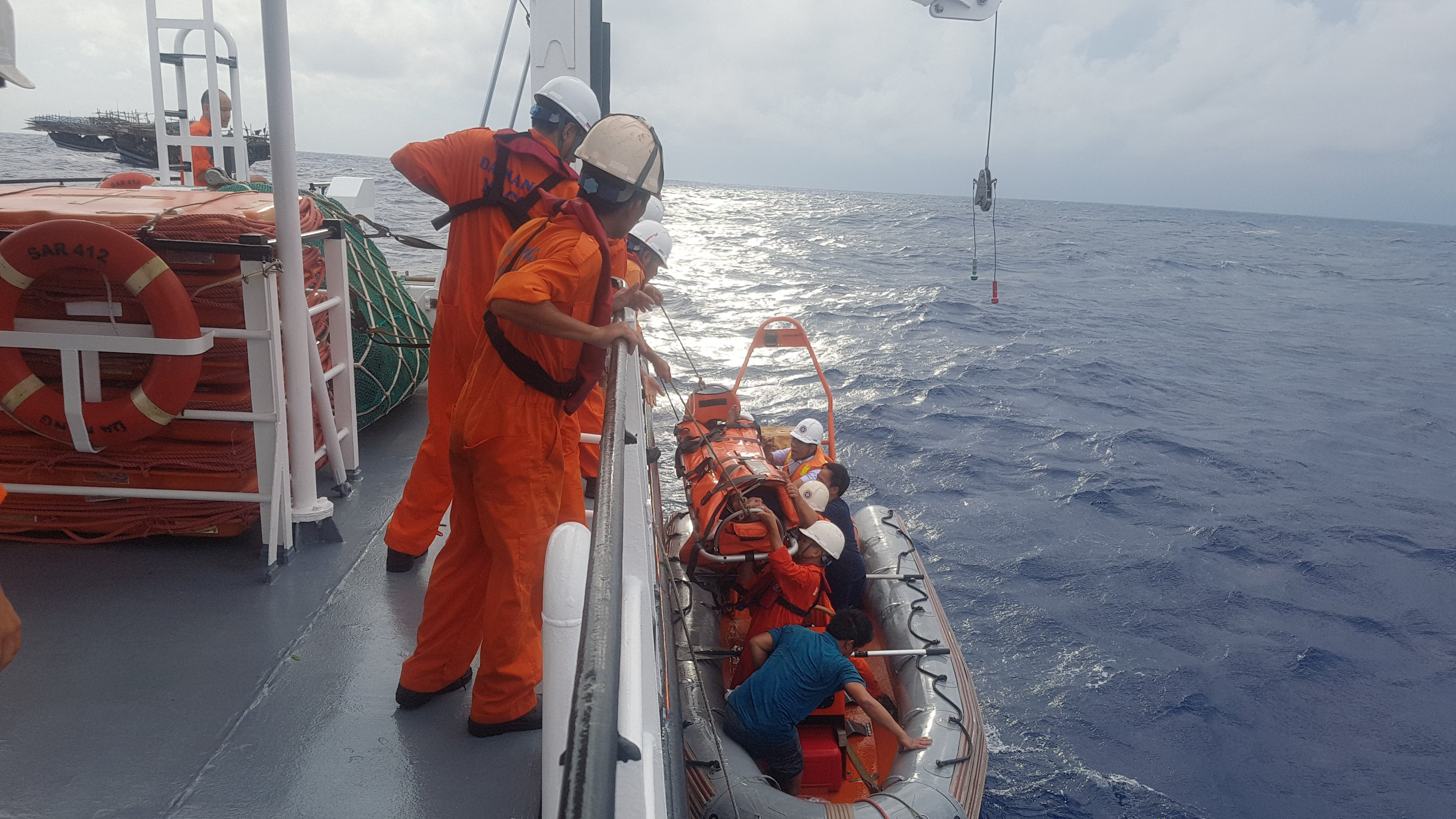 Ngoài ra, Trung tâm phối hợp tìm kiếm cứu nạn hàng hải Việt Nam quyết định điều động tàu SAR 412 cùng 1 ê kíp bác sỹ chuyên khoa khẩn trương lên đường cứu nạn.