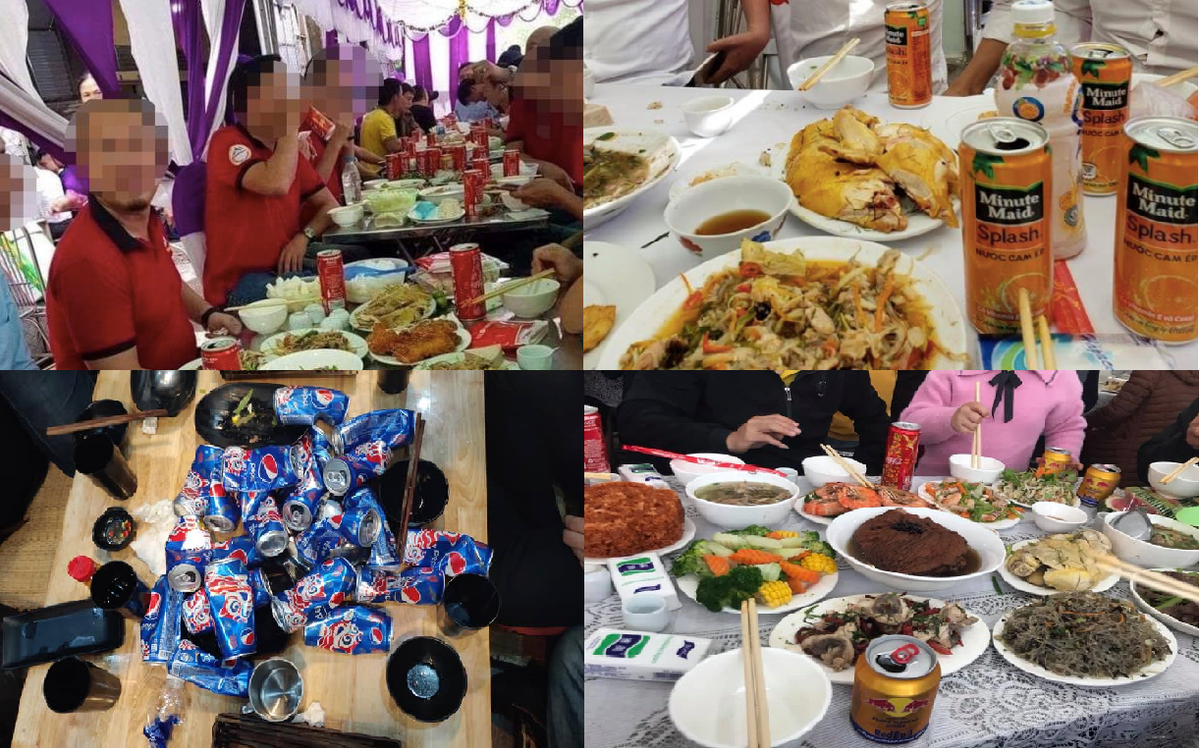 Tài khoản Nguyễn Đức Vinh chia sẻ: "Hôm nay đi ăn cưới đây, cả mâm không ai uống 1 giọt, mua hết nước ngọt".