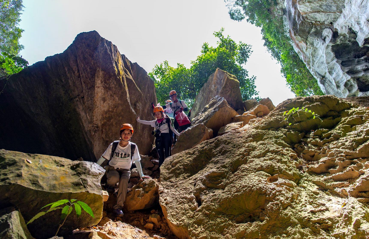 Ở ngoài cửa hang, một tảng đá lớn chắn lối, nước từ suối đổ vào hang theo những khe nhỏ. Đoàn người chúng tôi ngồi trên phiến đá không một ai cảm thấy mệt mỏi. Có chăng là vẻ tiếc nuối, hụt hẫng khi vừa bỏ lại một Hung Ton đầy vơi những cảm xúc.