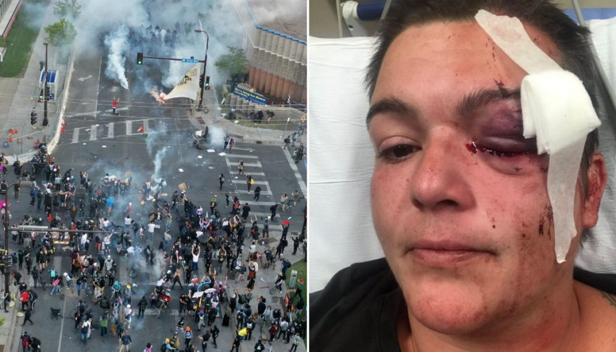Linda Tirado với vết thương bên mắt trái. (Ảnh: Newshub)