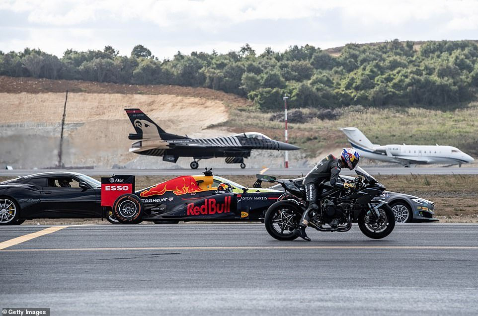 Tham gia vào đường đua dài 400 m trên đường băng của sân bay quốc tế sắp đi vào hoạt động vào tháng 10 tới, 3 chiếc siêu xe bao gồm Tesla P100DL, Aston Martin New Vantage, Lotus Evora GT 430), 1 chiếc mô tô phân khối lớn Kawasaki H2R, mua xe đua Công thức 1, 1 chiến cơ F-16, 1 máy bay phản lực thương mại đã có màn so đấu ấn tượng.