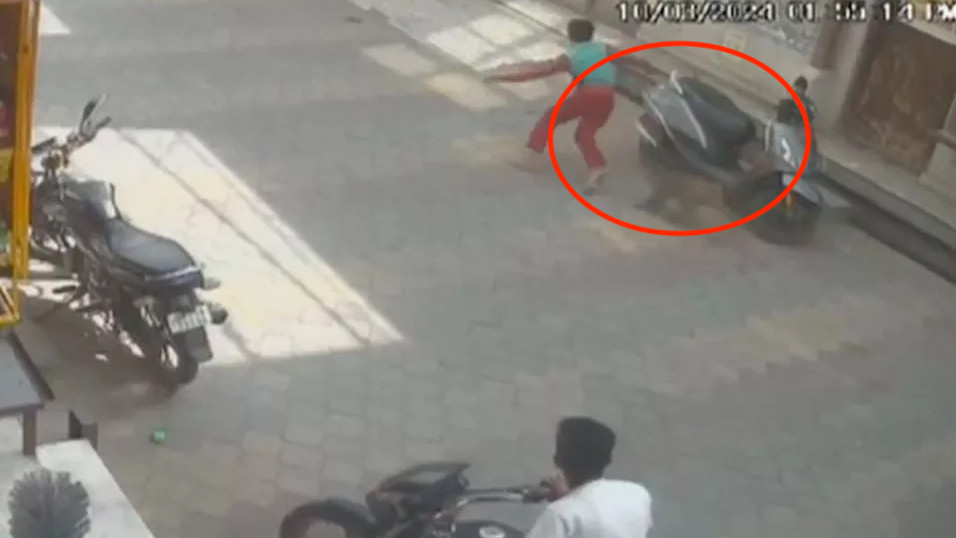 Cậu bé ngã xuống đường sau khi bị khỉ cắn vào chân. (Ảnh: @mirrornow/Facebook)