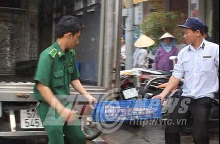 | Lực lượng liên ngành tiến hành chuyển số hàng trên về nhà xác Bình Hưng Hòa để tiêu hủy (Ảnh: PN) |