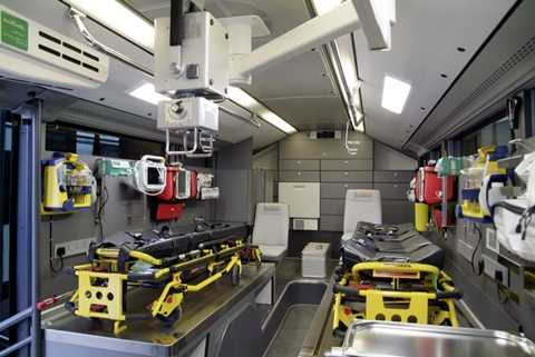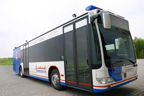 Các kỹ sư của Mecerdes đã mất khoảng 700 giờ làm việc để biến chiếc xe buýt Mecerdes-Bena Citaro này thành xe cứu thương. Đây là những chiếc xe cứu thương cỡ lớn duy nhất mà các y tá có thể kéo bệnh nhân lên xe trong tư thế nằm.