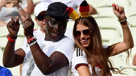 | CĐV Đức nhảy múa trên khán đài sân Castelao. |