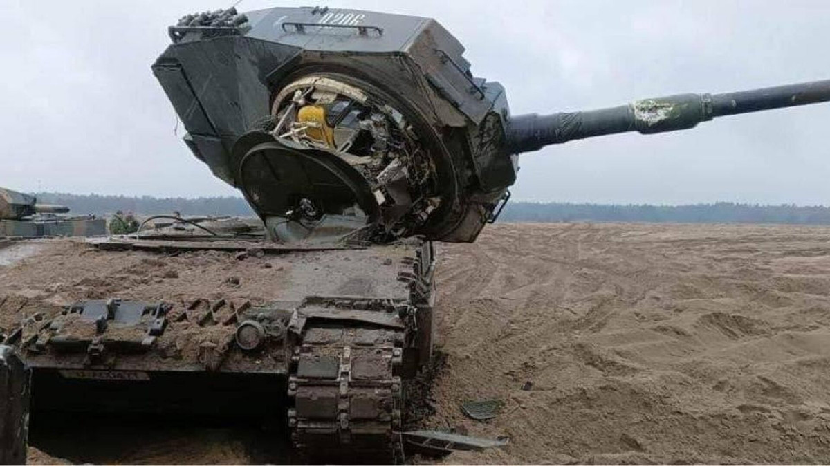 Một chiếc xe tăng Leopard 2A4 của Ukraine gặp sự cố trong quá trình huấn luyện tại Ba Lan. (Ảnh: Sputnik)