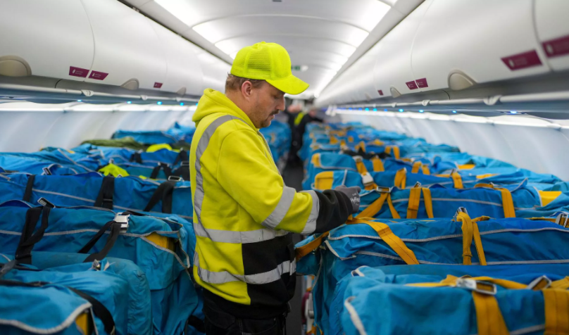 Những bọc thư tín trên chuyến bay đưa thư cuối cùng của hãng hàng không Eurowings ngày 28/3. (Ảnh: Euronews)