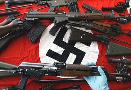 | Những vũ khí thu được tại hang ổ của băng nhóm Phát xít mới. (Ảnh: BBC) |
