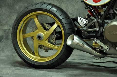 | Bánh sau của xe cũng được lấy từ Monster S4R, nằm ngay bên cạnh lon pô "loa kèn" il trombone từ SPARK. Cổ pô của xe do hãng SUPERMARIO sản xuất và có thiết kế 2-to-1. |