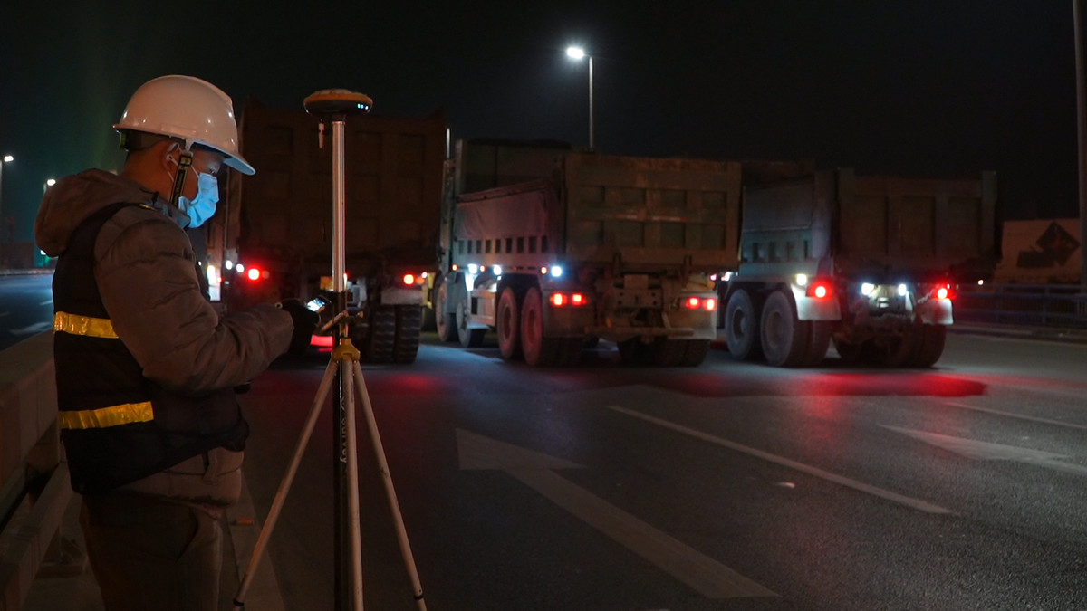 Từ 0h đến 4h ngày 17/2, lực lượng chức năng đã dựng rào chắn, cấm tất cả các xe lưu thông qua cầu Nhật Tân và dùng 8 xe trọng tải từ 27-30 tấn để hỗ trợ thử tải.