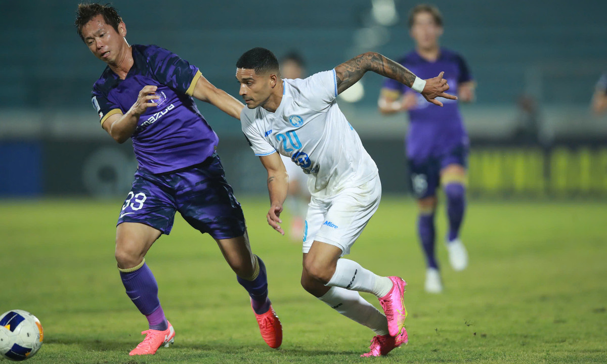 CLB Nam Định (áo trắng) thua đậm Sanfrecce Hiroshima.
