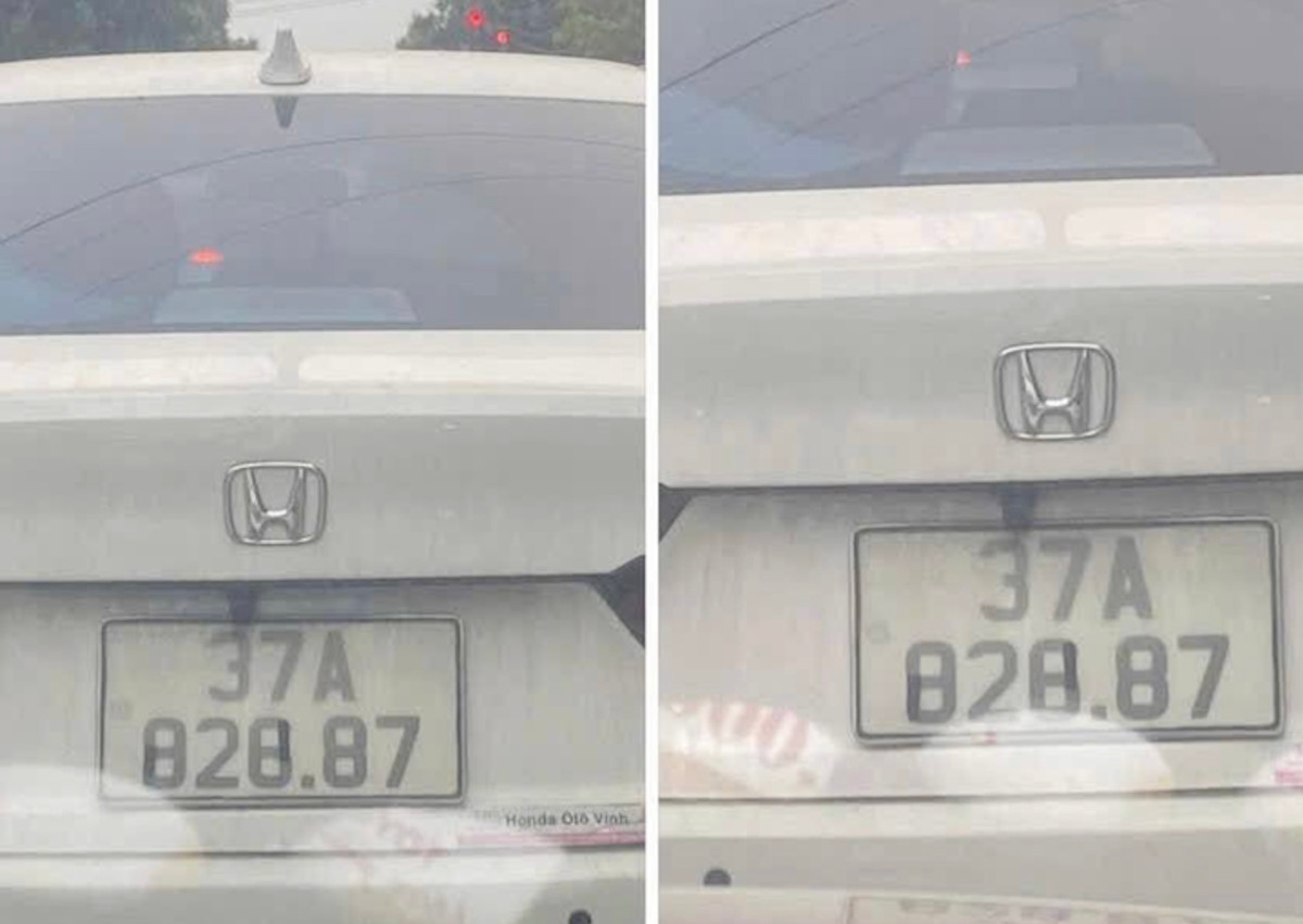 Một tài xế ở Nghệ An dùng băng dính che biển số ô tô vừa bị lực lượng CSGT xử lý. (Ảnh: CANA)