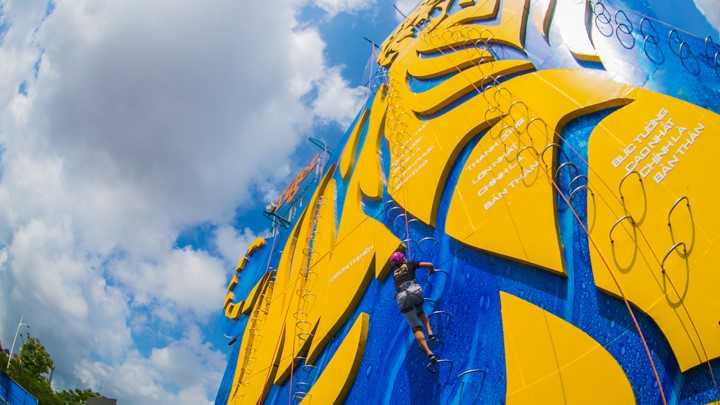 | Không chấp nhận đầu hàng, Tiến đã tự tạo “cú huých” cho mình bằng cách tham gia thử thách chinh phục bức tường Tiger cao đến 25m để chinh phục nỗi sợ đã dằn vặt cậu bấy lâu. |