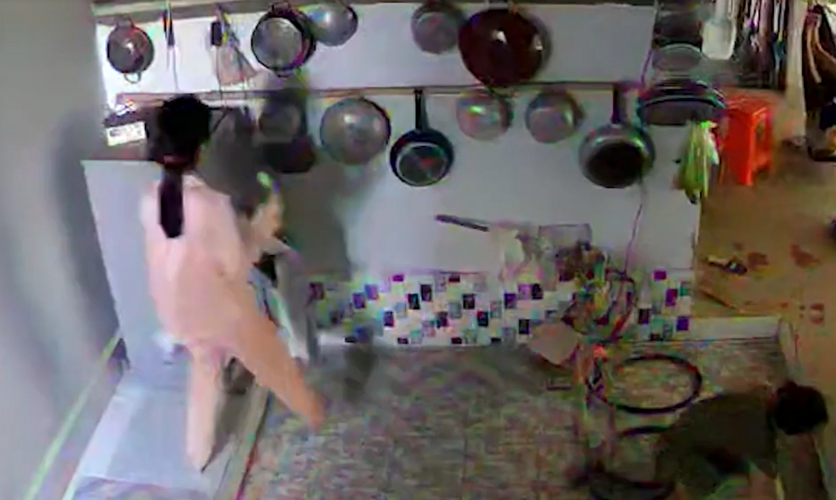 Dùng chân mở tủ lạnh, cô gái ngã bổ chửng