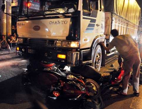 | Hiện trường xe tải húc hàng loạt xe máy và người điều khiển |