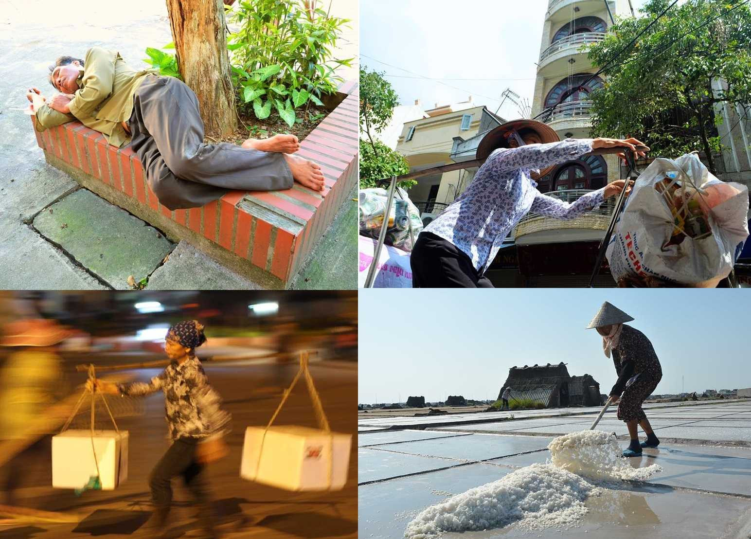 Để có tiền lo cho gia đình, con cái, tấm lưng gầy của mẹ vẫn lam lũ trong đêm (ảnh chụp tại chợ Long Biên)