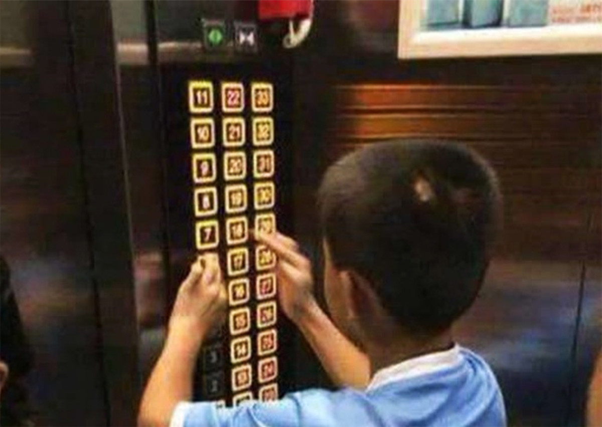 Nhiều phụ huynh để mặc con bấm toàn bộ các số trên bảng điều khiển thang máy như một trò vui.