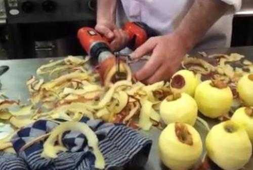 Gọt táo cực nhanh với máy khoan