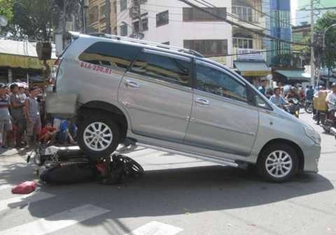 Trước khi dừng lại, chiếc "xe điên" đã đâm nát một xe máy dream khiến chiếc xe bị gãy càng và cuốn vào gầm một xe tay ga, đồng thời làm nát đầu một chiếc Lexus RX350 đang đỗ bên đường.