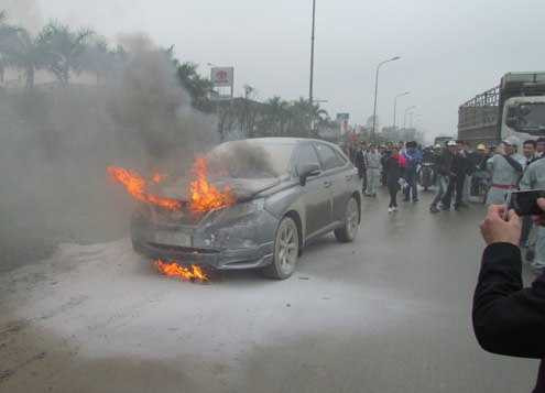 Đến địa phận ngã ba giao nhau giữa đường Lê Lợi và Lê Hoàn, thuộc phường Lương Khánh Thiện, tài xế dừng xe theo tín hiệu đèn giao thông thì bất ngờ phần capo phía trước bốc cháy, tài xế đã nhanh chóng chạy ra khỏi xe và tri hô người dân gần đó đến giúp đỡ.