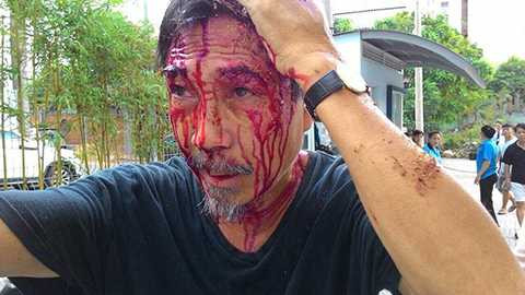 | Ông Phan Thái Tú bị các đối tượng đánh chảy máu đầu |
