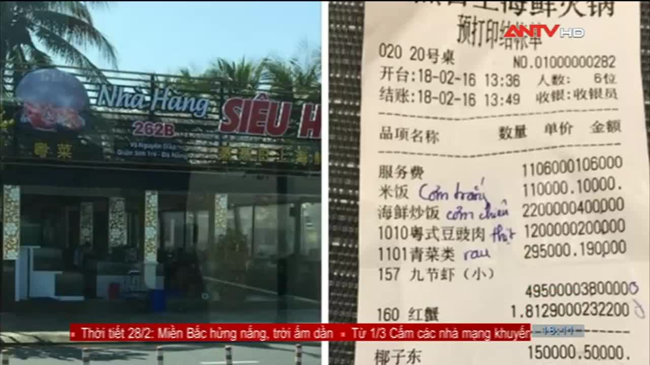 01/03/2018 15:05:00 +07:00Một nhà hàng ven biển ở quận Sơn Trà, TP Đà Nẵng vừa bị phạt 12 triệu đồng sau khi bị khách du lịch tố chặt chém, xuất phiếu tính tiền bằng tiếng Trung Quốc.