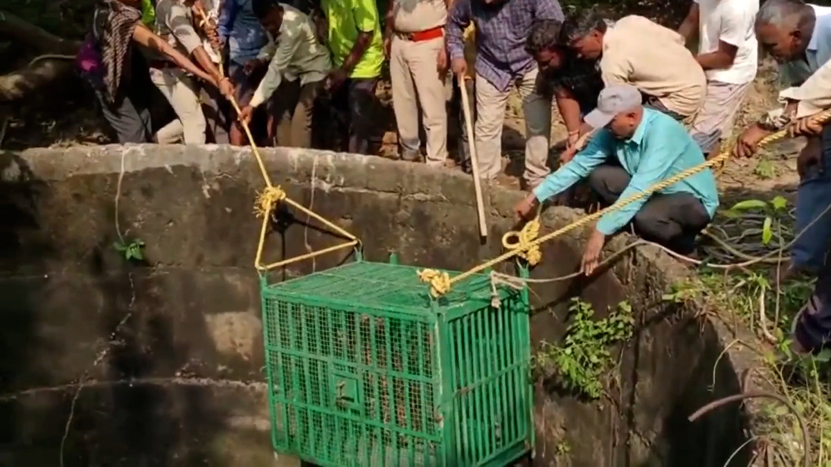 Con báo bị mắc kẹt dưới giếng nước bỏ hoang, lực lượng chức năng cùng người dân đã phải dùng lồng sắt để đưa nó lên, sự việc xảy ra tại Ấn Độ.