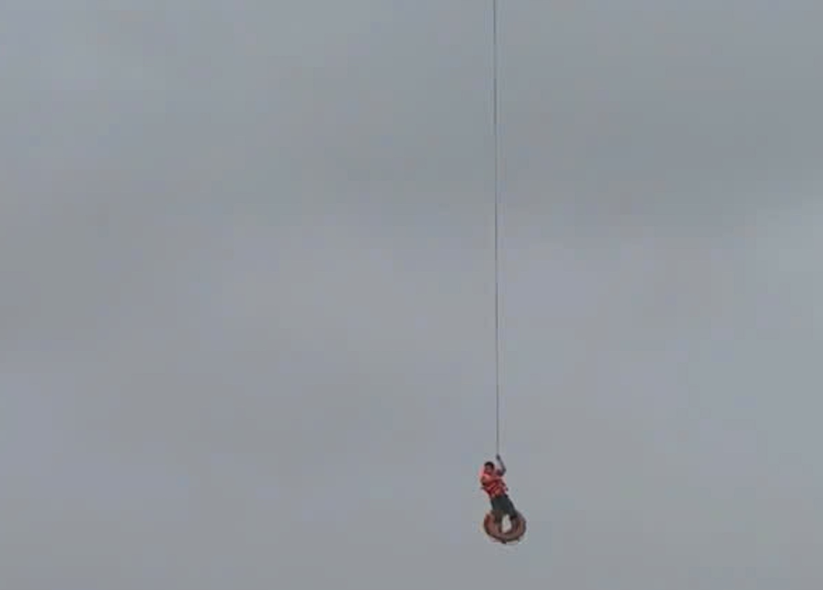 Lực lượng chức năng đang điều khiển máy bay không người lái đưa ông Phạm Văn Trường đến vị trí an toàn