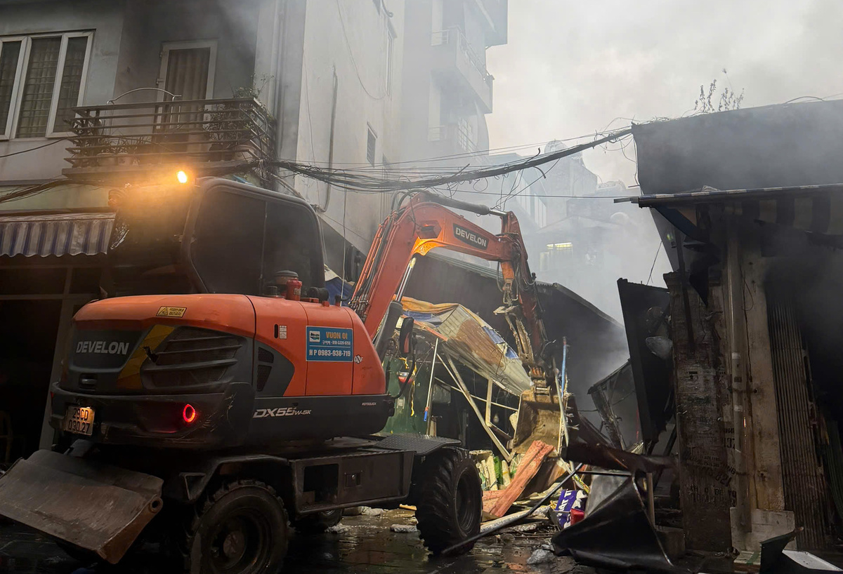 Đồng thời chính quyền địa phương huy động máy xúc phá dỡ cấu kiện sụp đổ, mở lối cho lực lượng Cảnh sát PCCC&CNCH tiếp cận tổ chức dập tắt đám cháy.
