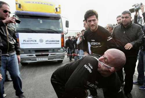 (VTC News) - Cựu đô vật người Mỹ - Lasha Pataraya đã dùng một bên tai của mình để kéo chiếc xe tải nặng 8 tấn đi được quãng đường dài 21,5m.