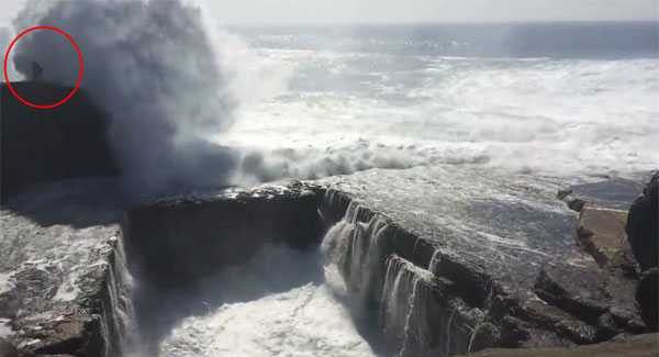 Một học sinh đang đứng quay video trên một mỏm đá ở bờ biển thì bất ngờ con sóng lớn ập đến cuốn cô đi, nhưng rất may một cặp đôi đứng gần đó chứng kiến sự việc