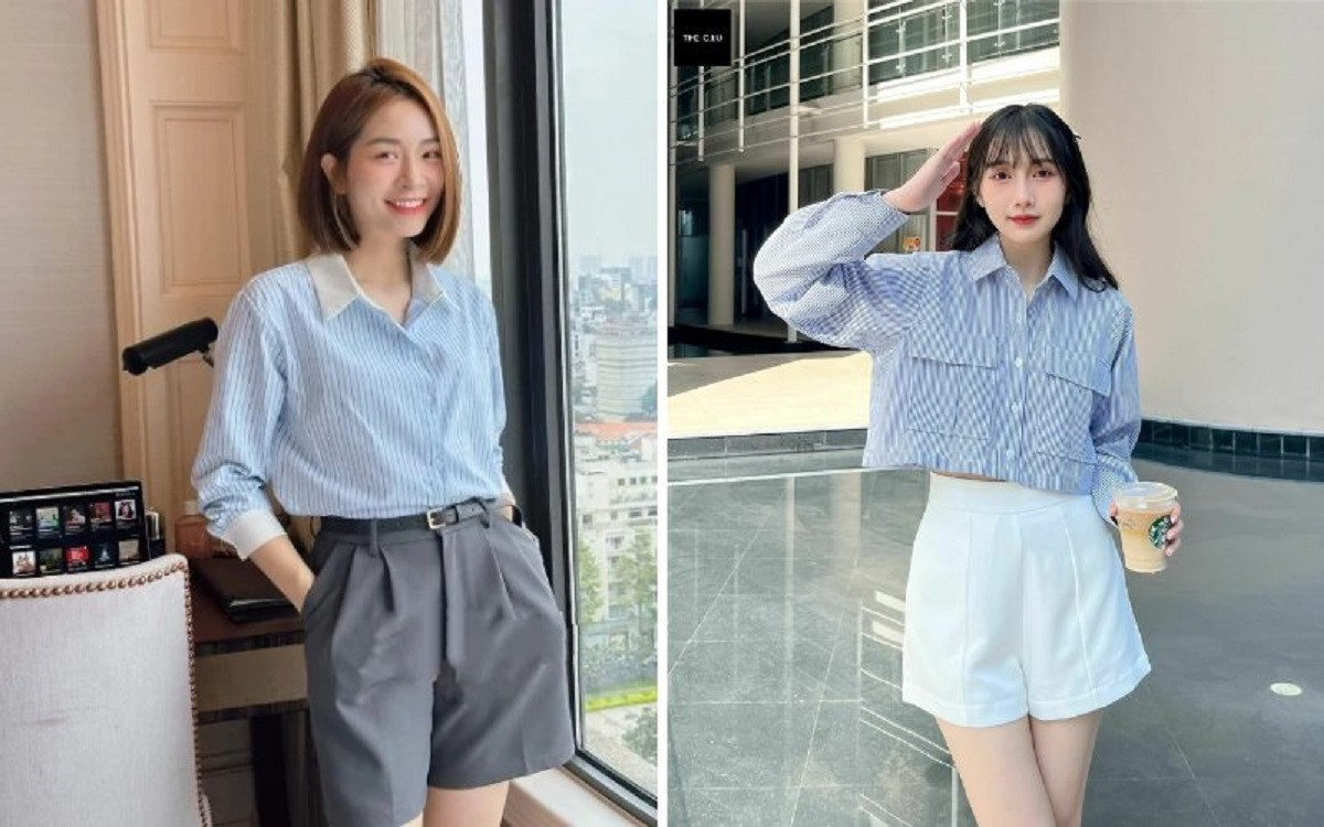Những cô gái yêu thích vẻ đẹp năng động, trẻ trung chắc chắn sẽ không bỏ qua set đồ sơ mi sọc phối quần short.