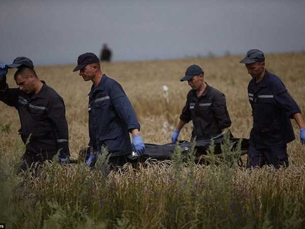 | Các nhân viên cứu hộ di chuyển thi thể các nạn nhân vụ tai nạn máy bay MH17 |
