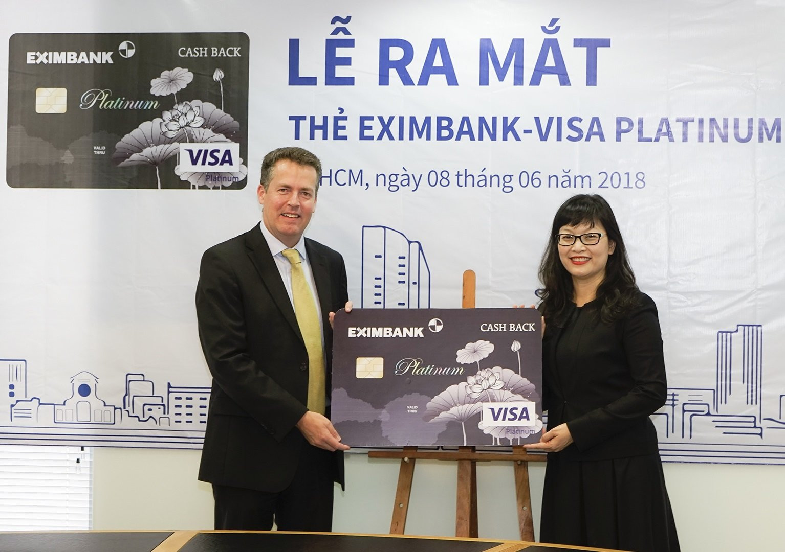 “Từ trái sang: Ông Sean V. Preston – Trưởng đại diện tổ chức thẻ Visa tại Việt Nam – Lào – Campuchia và Đại diện Eximbank Bà Đinh Thị Thu Thảo”