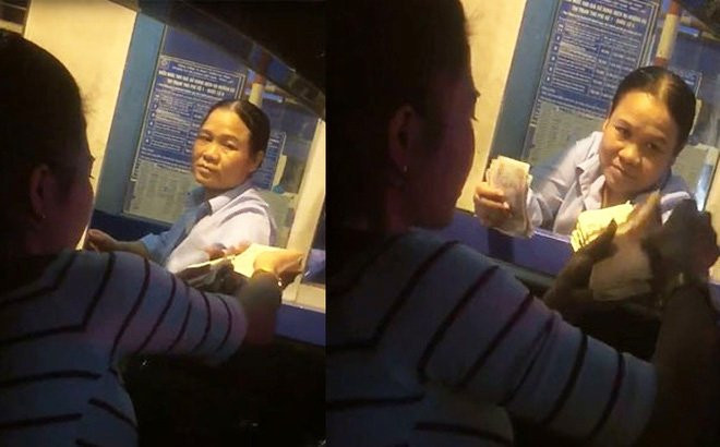 Nữ tài xế trả tiền lẻ khi qua trạm vì cho rằng mức phí quá cao.