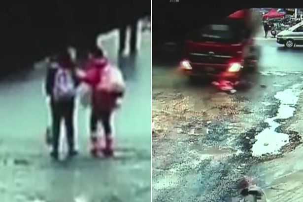 Sự việc xảy ra vào khoảng 7h sáng ngày 23/12 tại thị xã Minh Quang, tỉnh An Huy, Trung Quốc. 2 bé gái đang đứng chờ sang đường để đi học thì chiếc xe tải '"điên" lao tới.