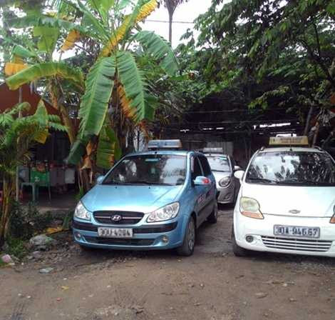 | Một chiếc taxi đang đứng chờ đón khách trước cổng đài hóa thân hoàn vũ. |