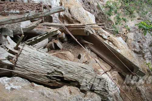 | Quan tài thân cây rất nhiều trong hang Tạng Mè |