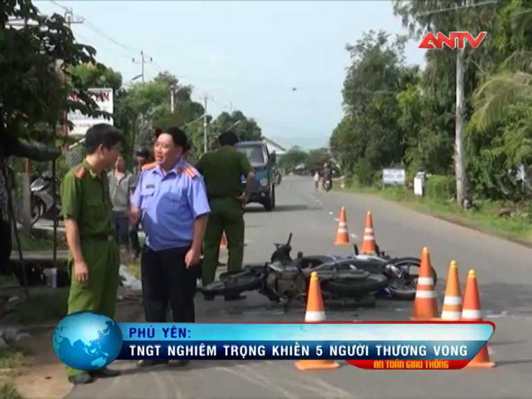 08/10/2014 10:15:00 +07:00(VTC News) - Tối 5/10, tại QL29, thị trấn Sông Hinh (Phú Yên) đã xảy ra một vụ tai nạn giao thông nghiêm trọng giữa 2 xe máy, khiến 5 người thương vong.