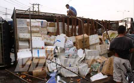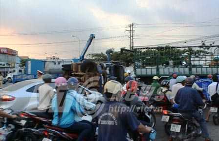 “Tôi nghe ầm ầm” chiếc xe lật ào xuống, hàng trăm thùng cartor ào ào tuôn xuống QL 13, rất nhiều phương tiện xe máy hoảng loạn tháo chạy…Cùng lúc này tài xế Phương nháo nhác cầu cứu trong cabin, tôi vội tri hô mọi người chạy lại phá cửa đưa ra ngoài, rất may tài xế chỉ bị xây xát nhẹ.. " cô Hoa bán hàng rong nhớ lại.