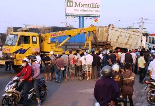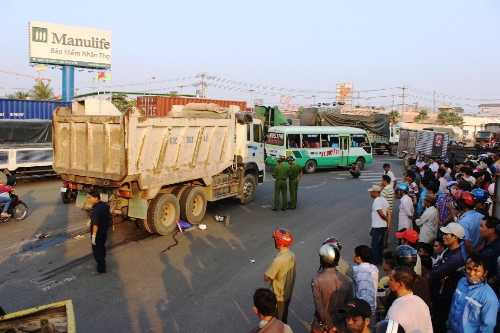 Va chạm khiến nạn nhân cùng chiếc xe máy bị cuốn vào gầm xe ben và kéo lê về phía trước. Tai nạn làm ông Ẩn tử vong ngay tại chỗ.